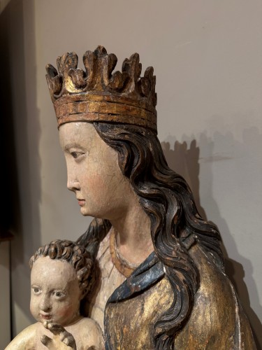 Retrouver le mobilier ou les objets d''art similaires à « Vierge à l'Enfant, Tyrol fin 15e début 16e siècle » présenté par La Crédence, antiquaire à Paris dans la catégorie Sculpture en Bois Renaissance, Sculpture.