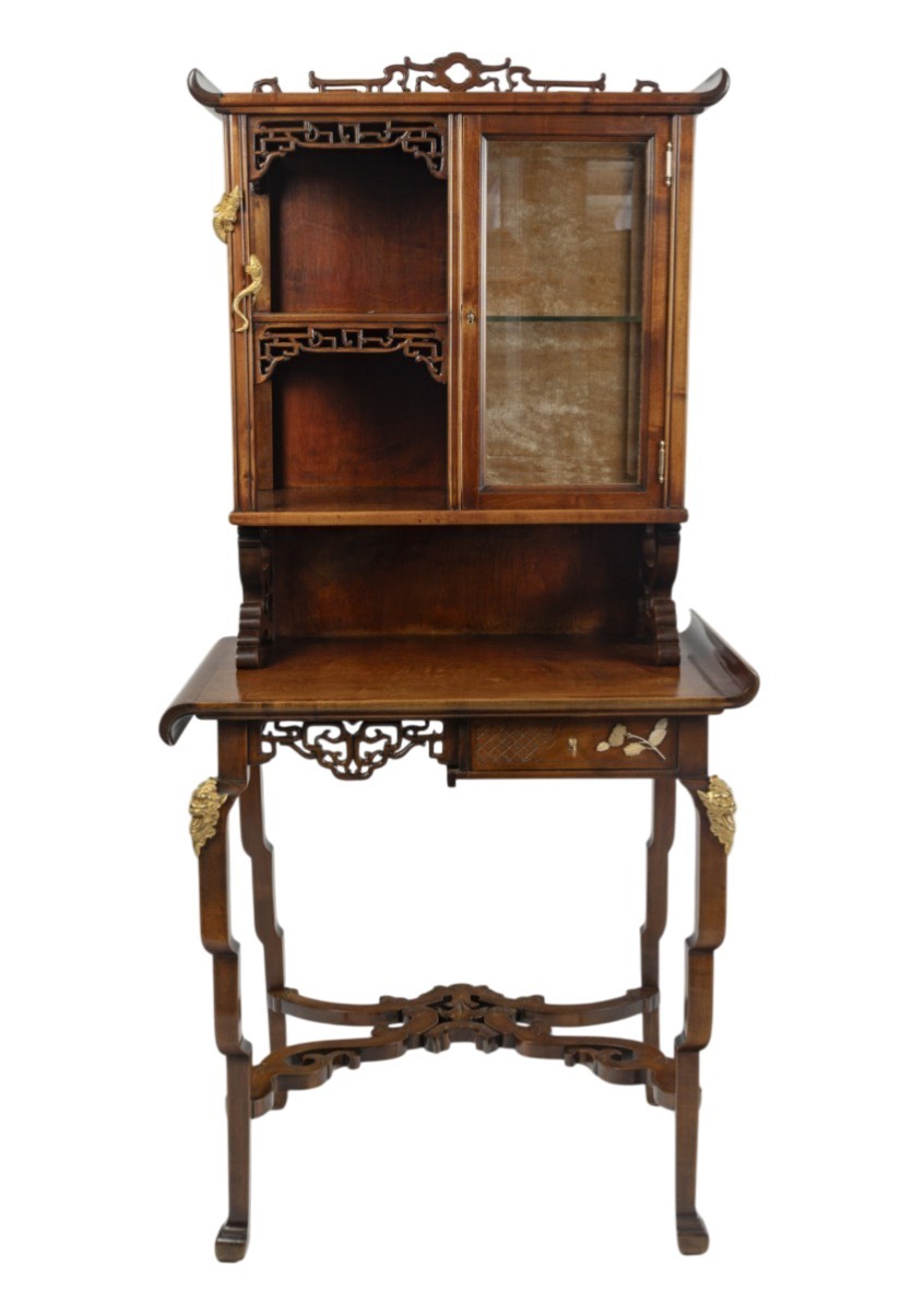 Atelier de Gabriel-Frédéric Viardot (1830-1904 est un ébéniste parisien et sculpteur sur bois spécialisé dans la production de meubles librement interprétés "genre chinois-japonais" et adaptés au goût européen de l'époque.
