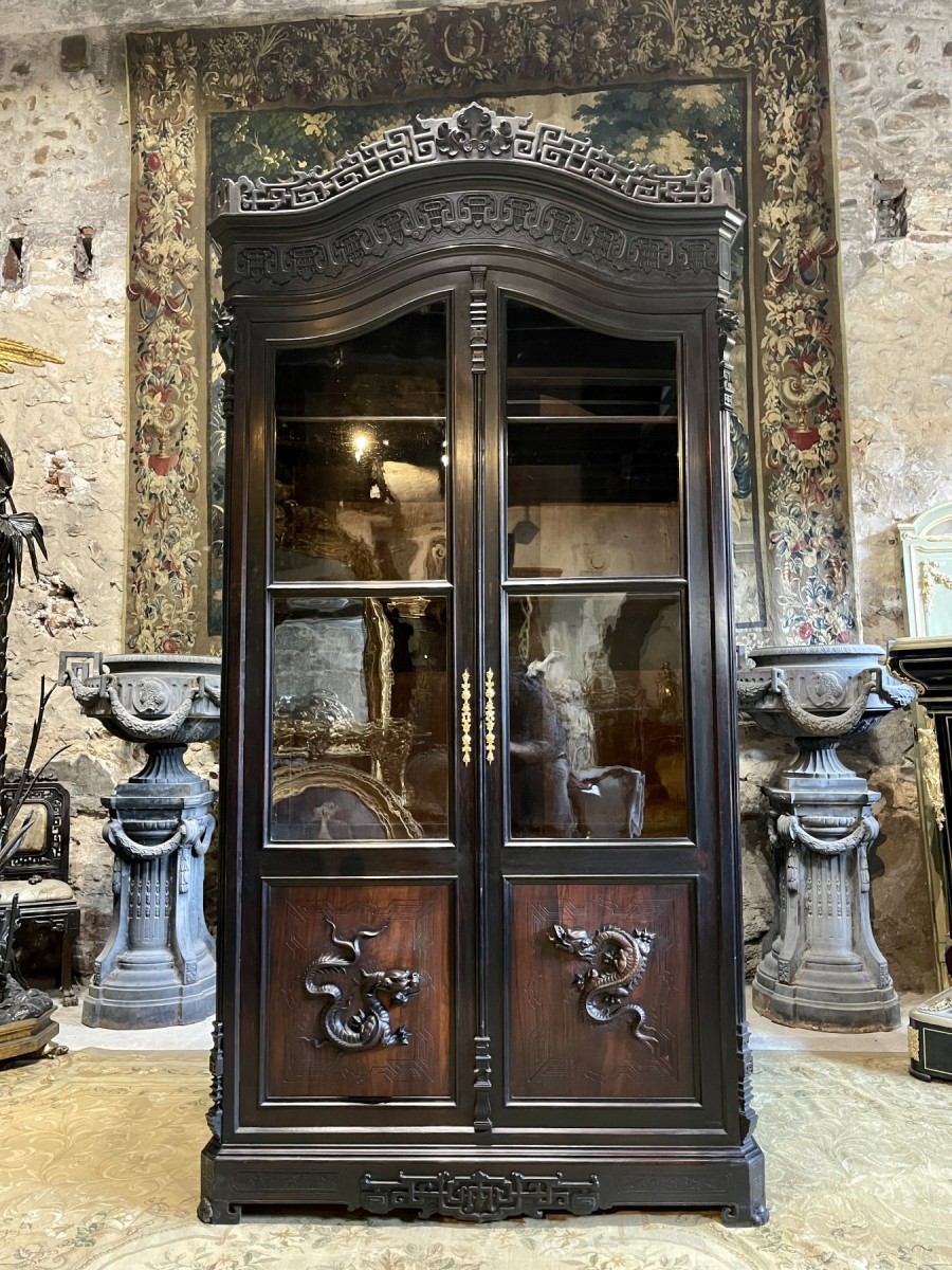 Retrouver le mobilier ou les objets d''art similaires à « Vitrine japonisante Napoléon III attribuée à Gabriel Viardot » présenté par Antiquités Simon, antiquaire à Saint ouen sur Seine dans la catégorie Bibliothéque, vitrine Napoléon III, Mobilier.
