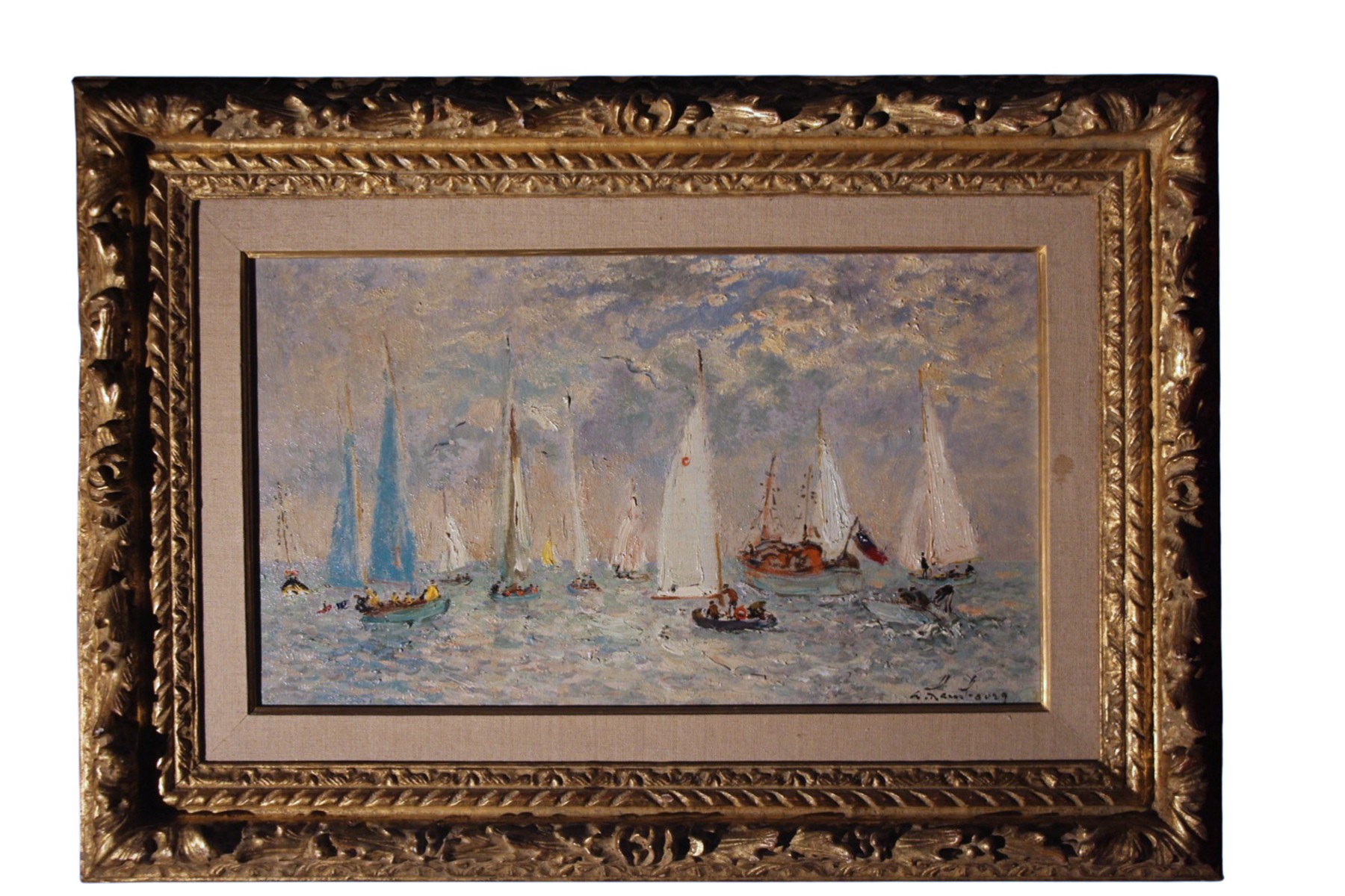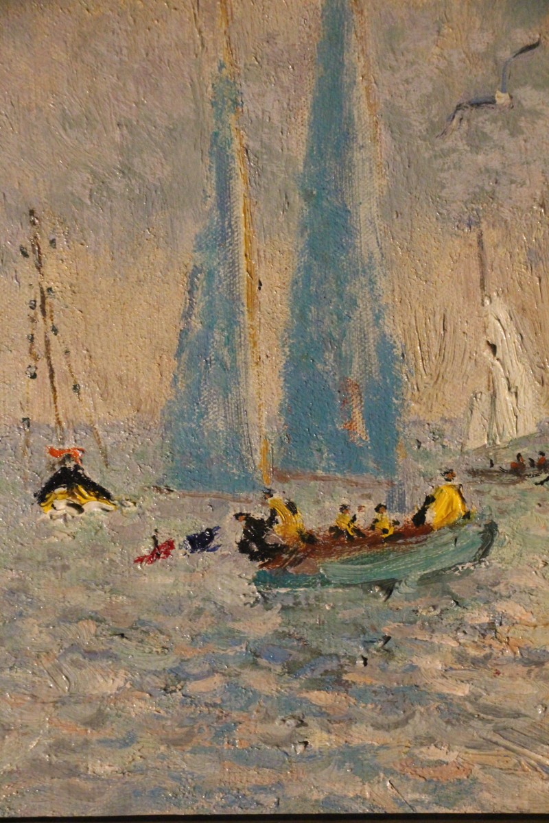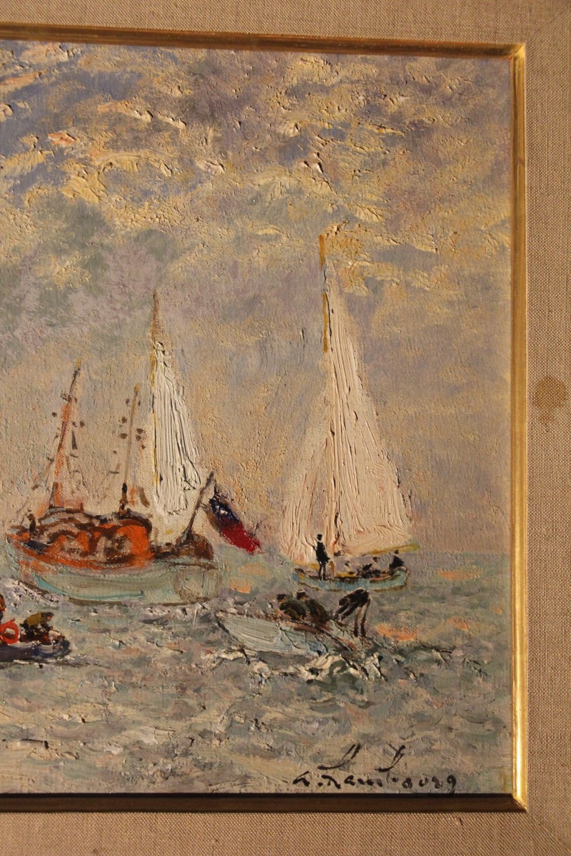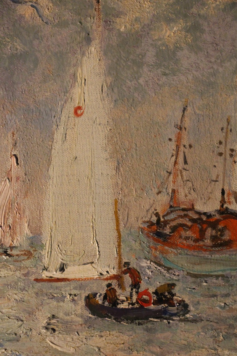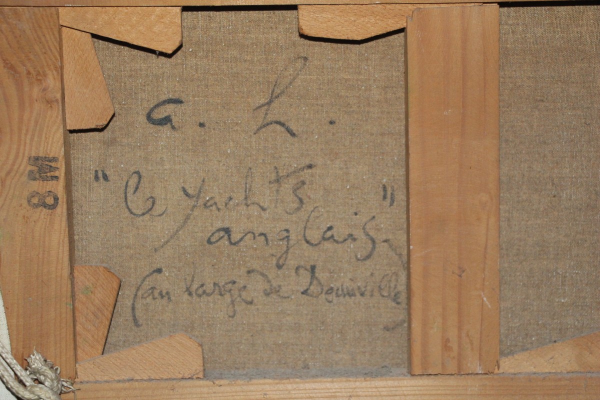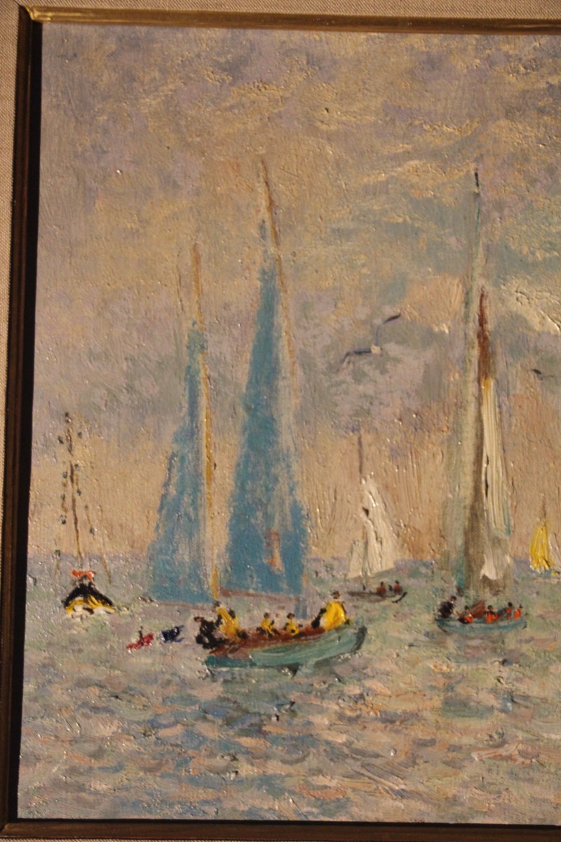 Yachts anglais au large de Deauville, huile sur toile signée d'André Hambourg, né
